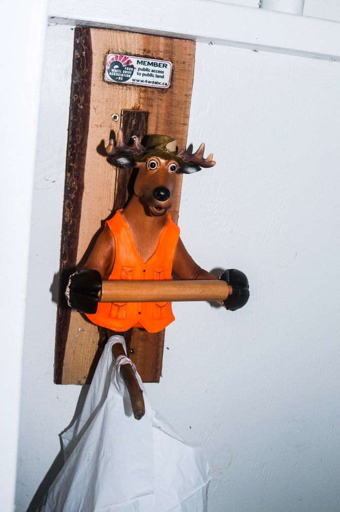 Last Saturday, I was able to make a long-overdue solo journey to one of my “churches,” the Nahatlatch Fire Lookout. Unfortunately, I couldn’t get the jeep to the top, so I parked and hiked up the last 3,424 steps in the snow to install the moose toilet paper holder in the outhouse.