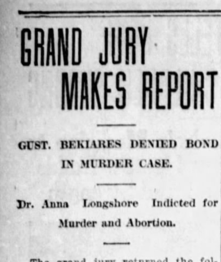 After her arrest, the prosecutor claimed that Dr. Longshore-Jackson confirmed to certain persons that she had performed many abortions and miscarriages, charging $25 for single women and $15 for married.