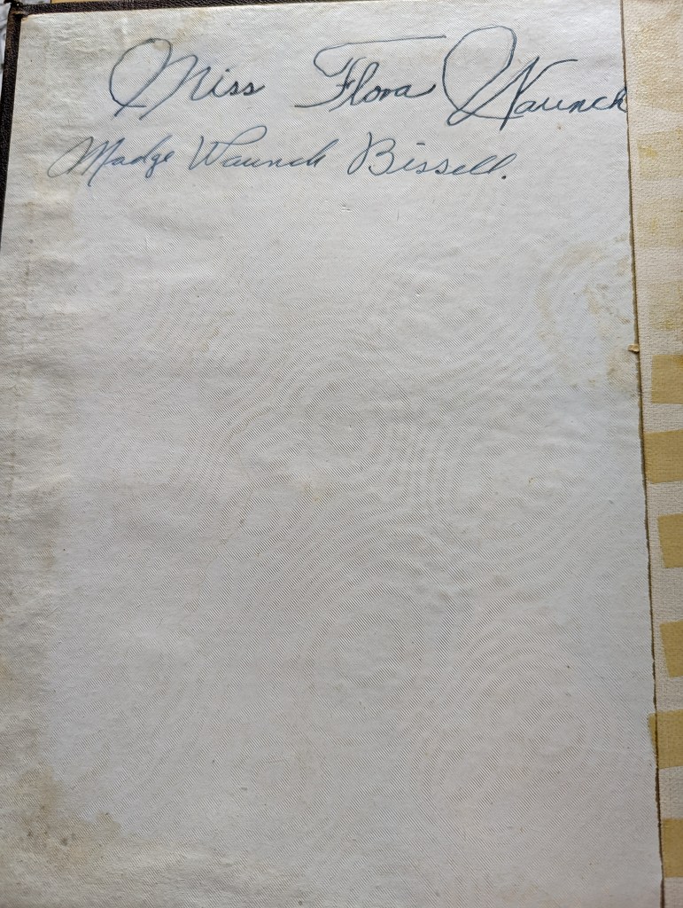 Flora Waunch is believed to be Flora Etta Waunch Minard (see here for Flora’s WikiTree Page and Madge is believed to be Madge Waunch Bissell
