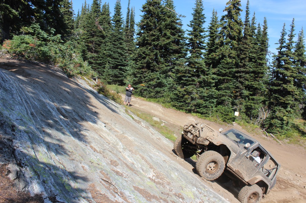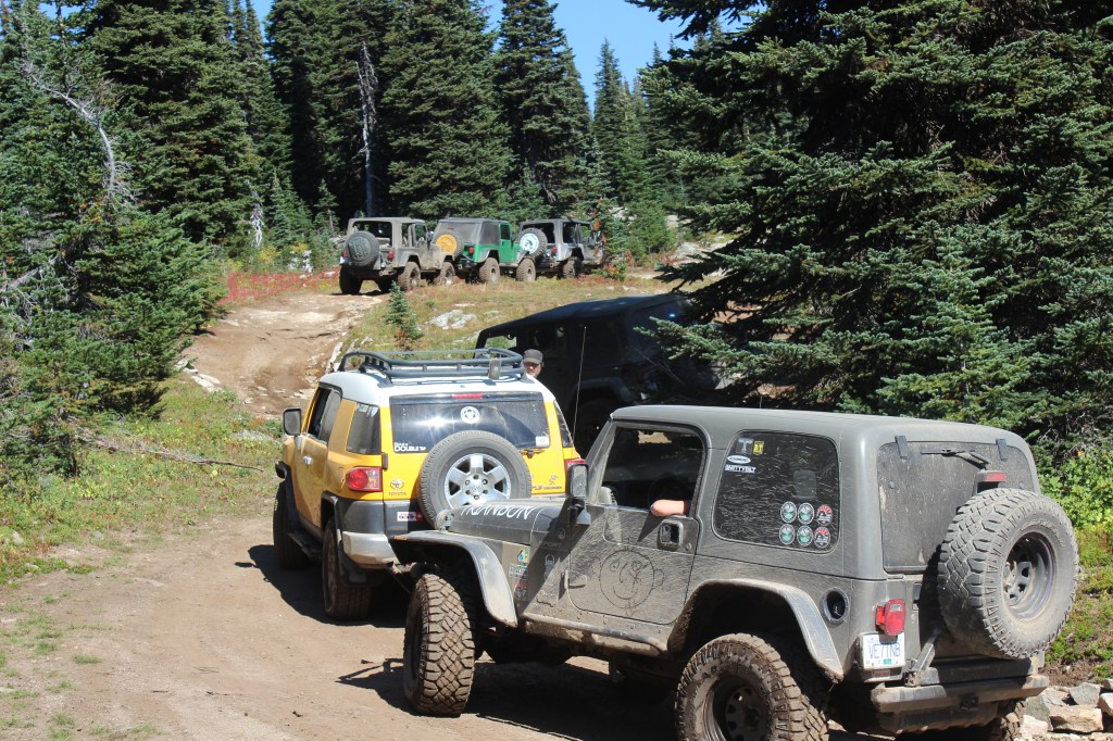After several hours through some beautiful terrain, you’ll descend into the valley home to Wells Lake. If you get a picture right, the trucks drive on the water as they cross the shallow roadway. After you leave, you’ll wind your way towards Falcon Hill. Not as challenging now as it once was, a plaque on a tree tells the legend of a few guys who traversed the entire trail in 1979 in a Ford Falcon, with only 33-in studded snow tires as their aid.