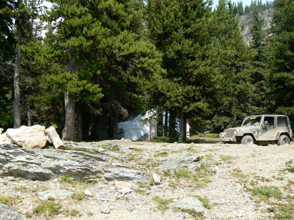 Climbing back up the sharp, snaking shale road (yes, with another three-point turn) and taking the first right, we discovered an unexpected treasure: an old, abandoned mining camp. Scattered across the site were weathered structures, rusting cans, piles of core samples, and, as luck would have it, a flat tire on the Jeep.